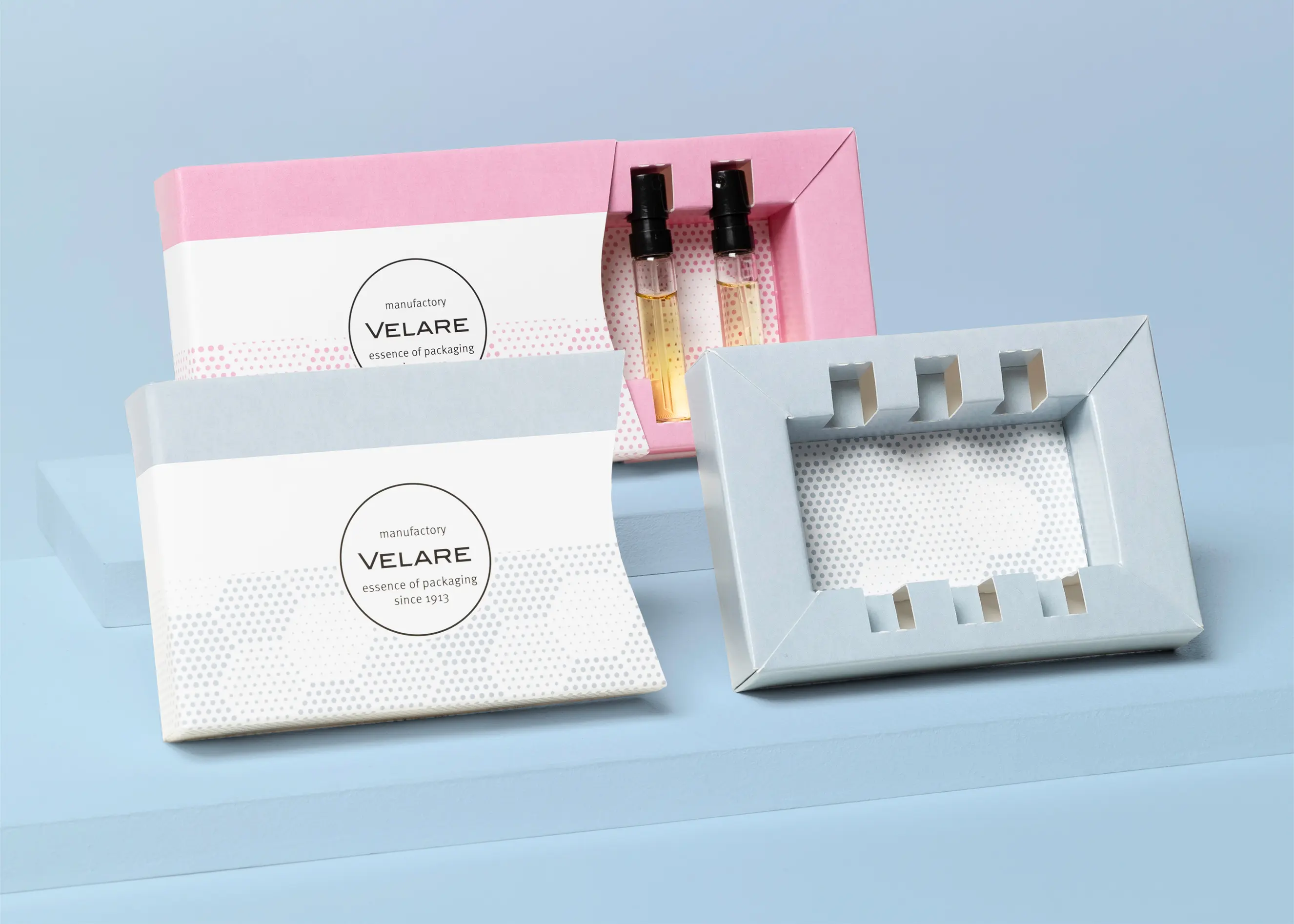 Set aus Hohlwandschachtel und Schuber für 5 Parfumproben